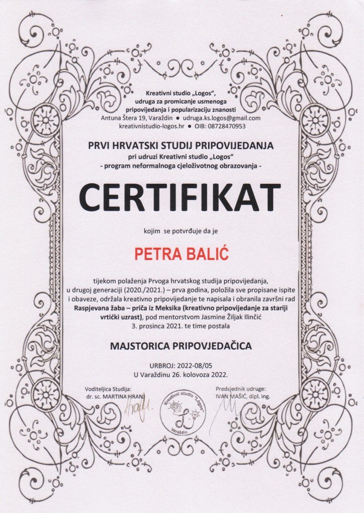 - Edukacija osobnog razvoja uz storytelling: Fakultet organizacije i informatike – Dani mentalnog zdravlja – Radionica “Učenje i osobna priča – kako što jednostavnije savladati izazove studentskog života”